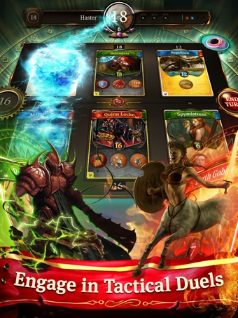 《地核破碎元素(EarthCore: Shattered Elements)》同為卡牌游戲,玩法形式上也與《萬(wàn)智牌2015》、《爐石傳說》相似,融合了卡牌收集、戰(zhàn)斗、策略等元素。開發(fā)商他們充滿信心地表示,游戲?qū)嵙δ芘c《萬(wàn)智牌2015》、《爐石傳說》匹敵,甚至超遠(yuǎn)他們。該作卡牌的攻擊將采用與眾不同的方式,而不再是基于魔法打擊??ㄅ埔还卜譃槿N類別:水屬性、火屬性和自然屬性。每張卡都有相應(yīng)的數(shù)值,數(shù)值越大則攻擊力越大,戰(zhàn)斗中獲勝的機(jī)率也增大。但是,如果卡牌在對(duì)戰(zhàn)中死去,玩家將失去這張卡牌。