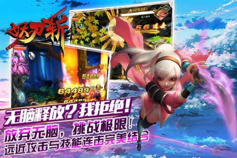 《妖刀斬》是一款日式暗黑Q版的橫版格斗與角色扮演相結(jié)合的手機(jī)網(wǎng)游。特色的技能系統(tǒng),摒棄市面上常見(jiàn)的固定技能玩法,多武器攜帶,每把武器配以獨(dú)特的奧義技能,戰(zhàn)斗中武器的一鍵切換,讓手殘黨也能享受格斗中無(wú)限連招的技能打擊快感。方向鍵與攻擊鍵的簡(jiǎn)單組合,沖刺與翱翔讓?xiě)?zhàn)斗變得來(lái)去自由,連招和打擊讓快感來(lái)的前所未有!