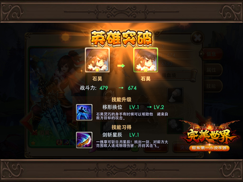 技能升級(jí)在玩家英雄的等級(jí)提升之后,就可以使用元神對(duì)于技能進(jìn)行升級(jí),可以提升英雄一些戰(zhàn)斗力,主要還是增加技能的傷害。