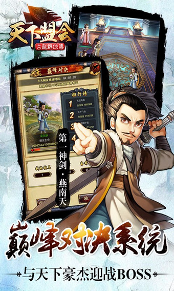 2015人氣新派武俠手游《古龍群俠傳》全新資料片“天下盟會”震撼來襲!新資料片將推出門派、俠客援護等多種新玩法。新時代的古龍,年輕人的武俠,邀您共闖江湖!古龍先生小說誕生60載,《陸小鳳傳奇》、《楚留香傳奇》、《絕代雙驕》、《小李飛刀》、《蕭十一郎》、《天涯明月刀》每一部都刻骨銘心,每一個故事都訴說著一段江湖俠骨情仇!在這里,李尋歡、陸小鳳、花無缺、小魚兒、花滿樓等經(jīng)典古龍俠客全部登場!在這里,你將成為小說的主人公,入江湖,抱美人,戰(zhàn)強敵!稱霸武林!
