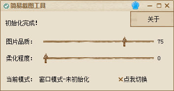 簡易截圖助手是一款簡單小巧綠色的截圖小工具。該工具界面簡單清爽,可支持窗口化模式和全屏化模式,讓截圖更加方便自然,有需要的朋友不妨下載用用看。