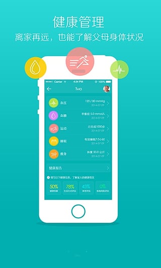 【血壓監(jiān)測】綁定智能健康設備,數據通過GPRS遠程傳輸,讓您及時了解家人的血壓健康狀況;【睡眠管理】自動分析睡眠深淺度和有效睡眠時間,實時了解自己和家人的睡眠質量;