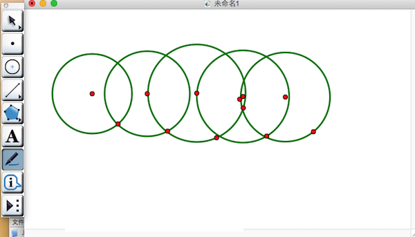 工具欄依次是選擇工具(實現(xiàn)選擇,及對象的平移、旋轉、縮放功能)、畫點工具、畫線工具、畫圓工具、文本工具和對象信息工具。在選擇工具和畫線工具按鈕上按住鼠標左鍵停留片刻,會彈出更多的類型工具;選擇對象的方法可以選擇點按、按Shift點按或拖動等方式選中對象。