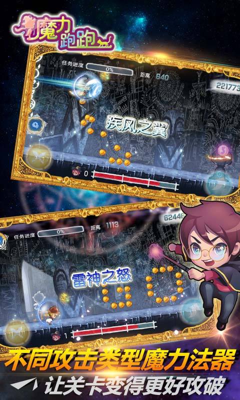 魔力跑跑游戲的背景是在一片充滿魔力的異域中,其中有一座魔法學校,許多的孩子都在這做學校中學習魔法,勵志要成為異域中最強的魔法師。學生們通過在異域中的不同地區(qū)探險,通過躲避各種各樣的險惡機關和打敗各種各樣的怪物來積累經驗、尋求寶物和尋找強大的伙伴,并為了自己的夢想而不斷的前進……游戲中跑酷的美術風格大膽采用了充滿魔力的歐洲風情的水彩畫風格,無論是暗紅色籠罩的魔界,還是靈氣濃郁的春之森林都用手繪的畫筆勾勒出一幅幅美輪美奐的景色。主界面的美術風格采用極富魔幻色彩,充滿藝術意境的風格,給人眼前一亮而又沉醉其中的感覺。