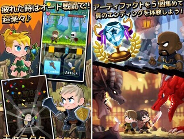 《連擊騎士(コンボナイ)》是一款迪士尼風(fēng)格解謎RPG的手機(jī)游戲。玩家要跟騎士們?cè)趶V闊的大地中冒險(xiǎn),收集種類豐富的遺物,用來學(xué)習(xí)追加能力。游戲中要在恰當(dāng)時(shí)機(jī)發(fā)動(dòng)攻擊、防御方塊,連擊成功后可發(fā)動(dòng)強(qiáng)力必殺技。本作基本廢除了所有課金要素,是一款完全免費(fèi)手游,玩家可以欣賞到所有故事及結(jié)局。【游戲特點(diǎn)】