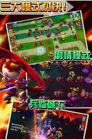 1.創(chuàng)新多模式多玩法:經(jīng)典劇情塔防+兵臨城下+單挑敵將,百玩不厭,考驗(yàn)?zāi)愕闹腔?更讓你過足手癮!