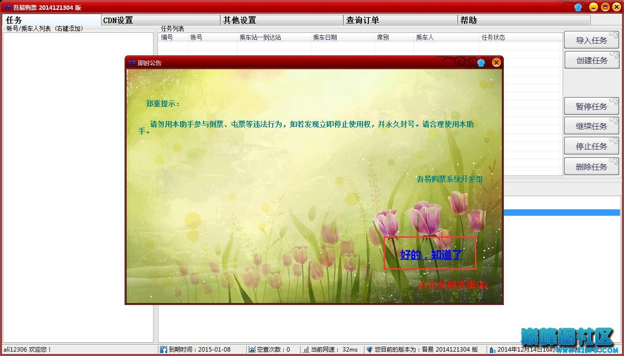 在軟件的主界面上,有一個公告框(關(guān)閉即可)。