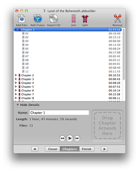 Audiobook Binder for Mac可以幫助我們顯示作者和標(biāo)題信息,顯示封面圖案,它還擁有可調(diào)節(jié)音頻轉(zhuǎn)換性能:?jiǎn)温暤篮土Ⅲw聲,采樣率。當(dāng)轉(zhuǎn)換完成時(shí)自動(dòng)把M4B文件添加到iTunes媒體庫(kù),不需要用戶手動(dòng)添加。如果我們需要處理的讀物太多,它能分割處理大量的有聲讀物。