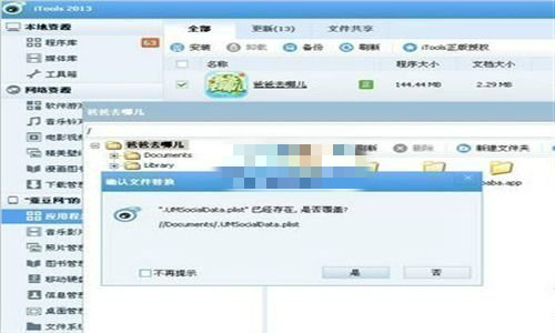3、把游戲目錄下的這兩個文件夾替換掉,選擇導(dǎo)入我們解壓的Documents和Library,選擇覆蓋替換就大功告成。