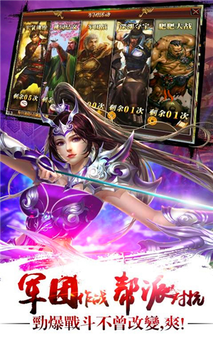 勁爆三國百度版供了手機(jī)游戲中一種更加爽快的游戲體驗(yàn),玩家可以選擇四種不同的游戲職業(yè)(龍將、劍舞、箭神、軍師)進(jìn)行游戲,每種職業(yè)有獨(dú)立的形象、技能與成長方式,游戲戰(zhàn)斗 過程強(qiáng)調(diào)操作與動作體驗(yàn),格斗和連擊作為戰(zhàn)斗的主要特色。玩家在游戲中可單人,也可與其他玩家組隊(duì)共同挑戰(zhàn)關(guān)卡,依照劇情引導(dǎo),在宏大的三國歷史背景下逐 步體驗(yàn)三國故事和人物的風(fēng)采。同時提供給玩家自身裝備、技能、武魂、寶石鑲嵌、珍寶合成、兵法、刻印等附加能力的成長方式,玩家可以通過通關(guān)關(guān)卡、參與活動等等各種方式提升實(shí)力。