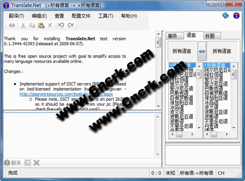 透過 Translate.Net ,你可以翻譯中文、英文、日文、俄文、法文、德文...等 35 種不同的語言,這大概是沒有一款安裝在系統(tǒng)中的電腦字典所可以辦到的,也因此讓你的電腦搖身一變成為語言萬事通。不過有一點是使用者必須注意到的,那就是 Translate.Net 的使用必須要連上網(wǎng)路,所以如果你的電腦并沒有網(wǎng)路連線,那么就享受不到 Translate.Net 的便利了