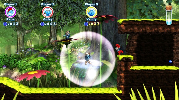 做為一款平臺游戲,我們可以從《藍色小精靈2》當中看到許多讓人熟悉的游戲要素,舉例來說,小精靈必須要在關卡中收集藍莓來提升通關時的評價,以及受到傷害時會掉落并遺失所有藍莓這一點,就帶有明顯的《音速小子》的影子;而游戲中的隱藏金幣、無敵皇冠以及跌落地形陷阱時會讓小精靈乘坐在泡泡內(nèi)回歸等設定,則頗有一點《新超級瑪利歐兄弟》等經(jīng)典平臺游戲的味道;此外由於本作是由 Ubisoft 擔綱製作,因此也讓游戲本身與該公司旗下著名的平臺游戲:《雷射超人》有著略為相似的夢幻風格。