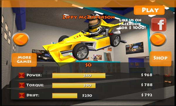 1、進(jìn)入游戲后,點(diǎn)擊play就可以開始游戲了2、進(jìn)入游戲后,玩家朋友可以使用系統(tǒng)贈(zèng)送的金幣來購買賽車,高級(jí)車需要后期解鎖才可以購買