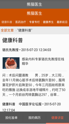 熊貓醫(yī)生V1.0支持化驗單極速解讀,健康在線問診,肝病咨詢,電子病歷,健康講堂等功能,先進和獨一無的專利技術(shù)幫您高精準解讀化驗單,特別是肝病乙肝群體。