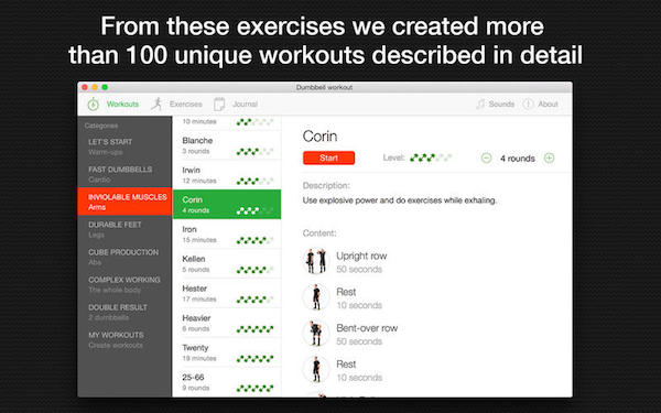 - 每一個運動都有詳細的描述,照片和視頻指令;