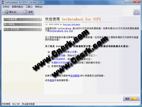 Runtime GetDataBack for NTFS V3.69.000 漢化綠色特別版 使你從FAT,NTFS文件系統(tǒng)中恢復(fù)文件,即使磁盤被格式化、重新分區(qū)、中了病毒,或者是因?yàn)殡娫垂收?、軟件原因或人為故意破壞,也照樣恢?fù)。還可以從映像文件中恢復(fù)文件、創(chuàng)建驅(qū)動(dòng)器映像文件等.