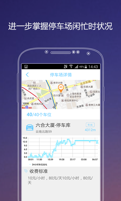 1. 為用戶提供目的地周邊精準(zhǔn)的停車場信息,位置、價(jià)格信息、可用車位數(shù)量。
