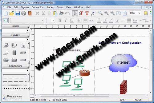 PaceStar LanFlow Net Diagrammer V6.12 英文綠色免費(fèi)版 LanFlow是一個(gè)針對電腦網(wǎng)絡(luò)而設(shè)計(jì)出來的流程圖繪制軟件 ,和一般流程圖之類的軟件相同,這個(gè)軟件可以讓使用者花費(fèi)不太多的力氣,就可以制作出網(wǎng)絡(luò)的流程圖。試用版本的功能性與正式版完全相同,只是不能讓使用者制作大型而復(fù)雜的流程圖,并且在打列時(shí)會有試用版的提示,其它像是說明文件的部份都是完整的,使用者可以直接參考說明文件來了解軟件如何使用