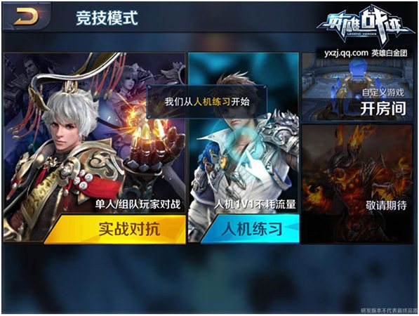 2、游戲分為[實(shí)戰(zhàn)對(duì)抗]與[人機(jī)練習(xí)]。