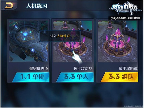 [人機(jī)練習(xí)]:分為[1V1單挑]、[3V3單人]、[3V3組隊(duì)] 三種模式。