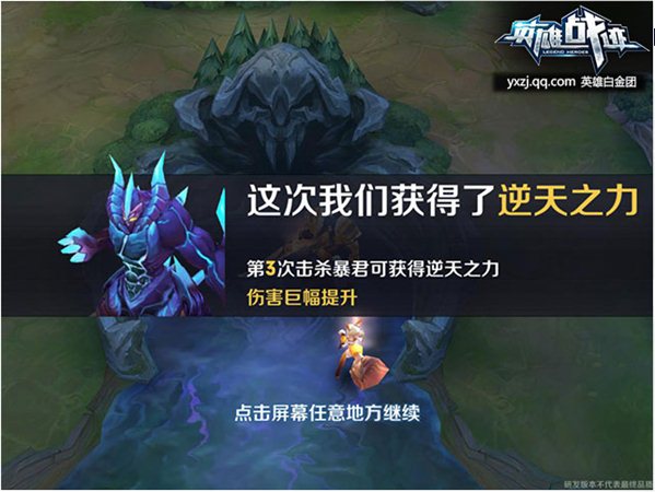 除了1V1單挑,3V3模式也是PVP的最主要模式。由于這個(gè)模式更能體驗(yàn)團(tuán)隊(duì)配合與對(duì)英雄的操作,往往要比1V1更受人歡迎。相比1V1,該模式地圖是長(zhǎng)平之戰(zhàn),人機(jī)模式的隊(duì)友是電腦,而競(jìng)技模式的隊(duì)友則是其他玩家,和1V1一樣,該模式最終獲勝條件也是以對(duì)面水晶被攻破而達(dá)成。在3V3中,玩家可以選擇不同類(lèi)型的英雄相互配合作戰(zhàn),同時(shí)該地圖增加了野區(qū)和野怪,擊殺野區(qū)中的野怪,不僅可以獲得經(jīng)驗(yàn)的獎(jiǎng)勵(lì)。擊殺定時(shí)刷出的暴君,奪取他的力量,還能獲得非常高額的buff加成。值得注意的是,這個(gè)buff是不會(huì)因?yàn)樗劳龅南У摹?礈?zhǔn)時(shí)機(jī)奪取暴君的力量或者在對(duì)手擊殺暴君時(shí)進(jìn)行偷襲,都不失為一個(gè)非常不錯(cuò)的戰(zhàn)略。