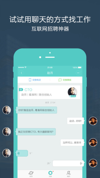 【跳槽更簡單】像微信一樣的app,隨時(shí)隨地約聊Boss