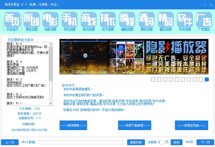 版本:V1.5修復(fù)資源寶不能獲取的bug,因網(wǎng)盤更換模板的關(guān)系