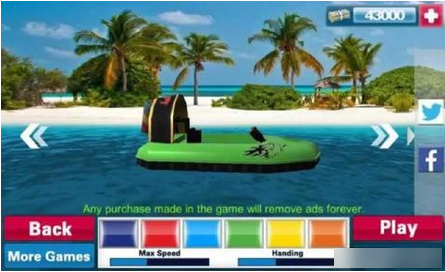 現(xiàn)代氣墊船大賽2015破解版是一款3D的氣墊船競(jìng)速游戲,這款游戲玩法非常簡(jiǎn)單,虛擬按鍵的操作模式讓玩家輕松上手,游戲還有多種氣墊船供玩家選擇,游戲已經(jīng)破解,玩家可以無(wú)限購(gòu)買物品。