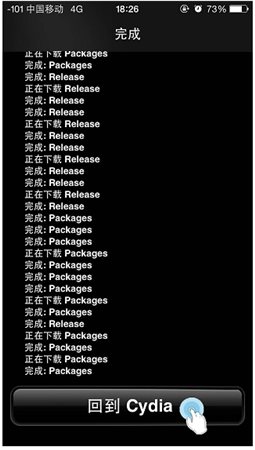 5、安裝完成后,點擊【回到Cydia】