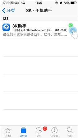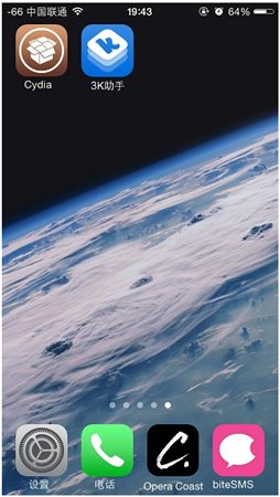 3K助手安裝前需安裝Cydia1、點擊打開桌面上的【Cydia】