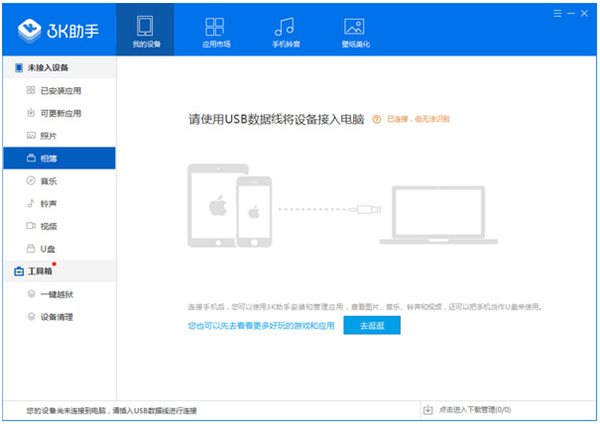 1、下載3K助手,將手機與電腦相連接