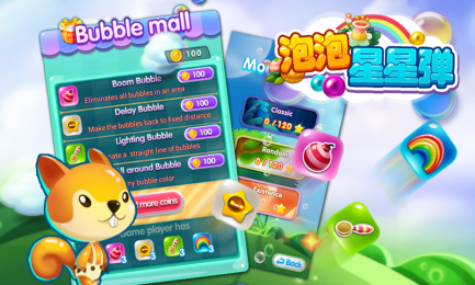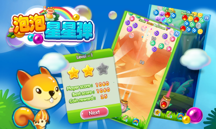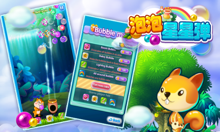 泡泡星星彈清涼來襲,點擊您要想要消除的地方,匹配消除三個或三個以上相同顏色的泡泡就能得分,特殊泡泡可以來幫助你通過這些棘手的關卡。清除所有在屏幕上的泡泡,獲得3星,你就能贏得更多的錢幣!