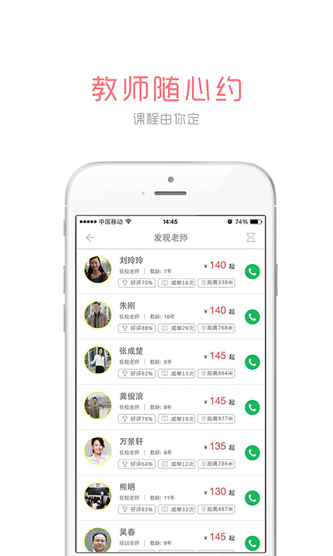 我們不喊口號,只看功效。對于“約課吧”,我們希望它能夠真正為家長排憂解難。雖然我們還不完美,但我們目標堅定!縱然,現(xiàn)在的家教APP很多,但約課吧不怕競爭,因為約課吧的存在不為賺錢,而是來自于一名普通父親想給孩子最好的教育的執(zhí)著。他以家長的身份關(guān)心家長所想,關(guān)心孩子所需。