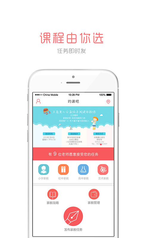 為了幫孩子找到靠譜的老師,經(jīng)過冥思苦想他決定開發(fā)“約課吧”——這個幫助孩子找到最合適的老師的APP!