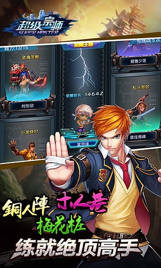 除了各具特色的闖關任務,炫酷有趣的裝備養(yǎng)成,龐大完善的玩法體系外。《超級宗師》特有的亂斗禁區(qū)、榮耀王座、武魂圣殿、異動空間等神秘玩法,也讓玩家間的互動擁有了無限的可能性!玩家指導自己的功夫團隊,參加世界格斗大賽。再一次把中國功夫打響世界!
