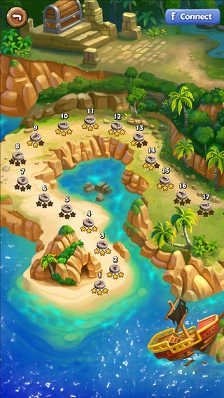 寶石海盜船(Jewel Mash)是一款以海盜為背景的策略類消除游戲!游戲中成為惡魔海里有史以來最膽大的海員吧,加入摩根船長(zhǎng)登上寶石之星號(hào),然后啟程去寶藏島的黃金海灘。充滿戰(zhàn)利品和名望的大冒險(xiǎn)正在等你開啟,準(zhǔn)備好了嗎?