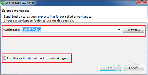 第一步在我們的電腦上打開軟件,如果以前沒有勾選“use this as the default and to not ask again”打開界面會(huì)彈出一個(gè)框,這里可以更改項(xiàng)目工作空間,如下圖所示: