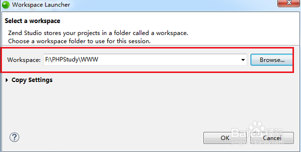 第五步這里把工作空間放在php的集成環(huán)境phpStudy安裝路徑的WWW下面,這樣只要開啟了phpStudy,在Zend Studio修改項(xiàng)目,可以直接在瀏覽器上看到運(yùn)行結(jié)果,如下圖所示: