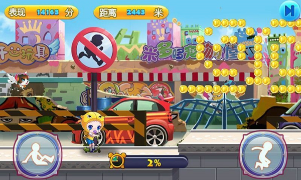 躲避前方的障礙,拾取沿途的金幣和道具;