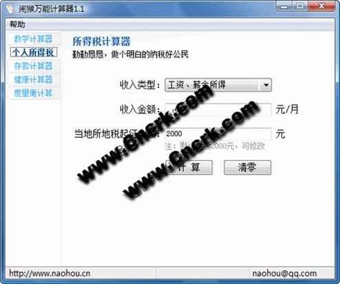 功能包括,個(gè)人所得稅、存款利率、體型計(jì)算、數(shù)學(xué)計(jì)算器、度量衡計(jì)算器等等,還在不斷完善中