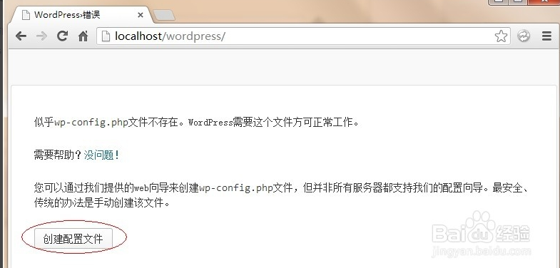 訪問(wèn)本地地址,本文是以localhost/wordpress目錄進(jìn)行安裝的,點(diǎn)擊創(chuàng)建配置文件: