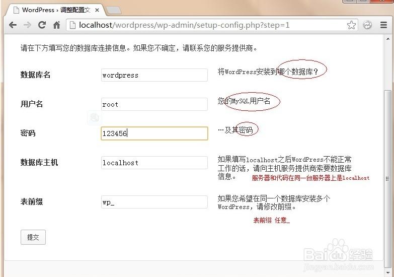 在phpmyadmin里面創(chuàng)建名為wordpress的數(shù)據(jù)庫(kù)后,選擇“現(xiàn)在就開(kāi)始”,填入相應(yīng)的信息: