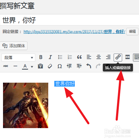 選中你要傳你撰寫的文字啊或者是需要添加鏈接的文字,啊點(diǎn)擊右上方的插入或編輯鏈接。