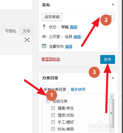 點(diǎn)擊該頁(yè)面右下方的,預(yù)覽,先選擇嗯分類目錄,然后再選擇預(yù)覽,最后選擇發(fā)布。