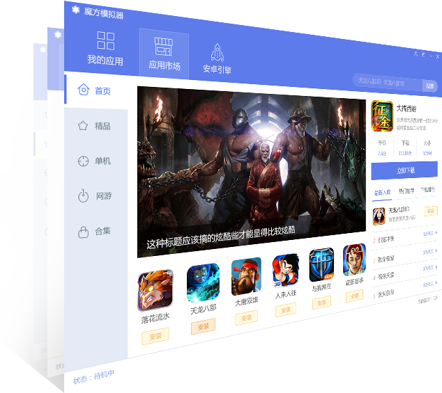 魔方安卓模擬器,讓你在電腦上也能盡情玩手游,大屏幕玩的更爽更暢快。魔方安卓模擬器由魔方網(wǎng)所推出,給玩家提供了三種安卓引擎,不論是什么游戲都能暢快運行。
