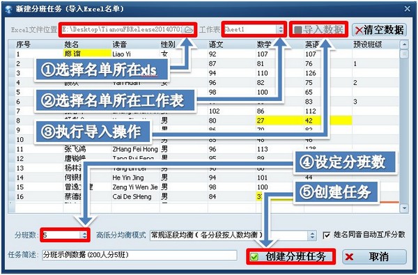 精良分班軟件是一款專為學校行政人員開發(fā)的快速分班軟件,精良分班軟件可以均衡各科成績,多種分班方案,可以分快慢班,同時軟件還具有關(guān)系生打招呼預設(shè)班級,早戀小團體互斥分散,尖子生、差生、高分、低分、男女 、原學校、借讀生、住校生均衡等強大功能,頂尖級別指標,分班偏差≦1,逼近理論極限。精良分班軟件綠色免安裝,直接使用,無需設(shè)置,真正一鍵搞定、一氣呵成!