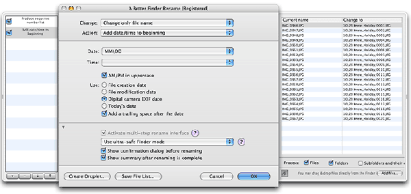 A Better Finder Rename提供了一套完整的重命名選項(xiàng),分為15個(gè)類(lèi)別,涵蓋的所有文字,字符,位置,轉(zhuǎn)換和截?cái)喙δ?,你?huì)期望從一個(gè)文件更名,但它不會(huì)停在那里。