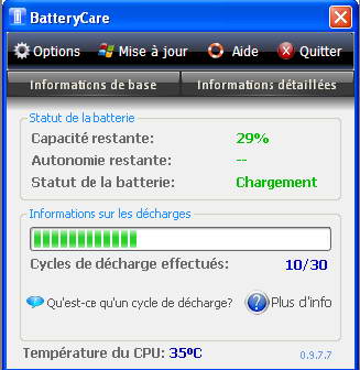 BatteryCare是一個簡單的筆記本電腦的電池監(jiān)控軟件,它可以監(jiān)控電池的放電循環(huán),并有助于提高的自主性和改善它壽命