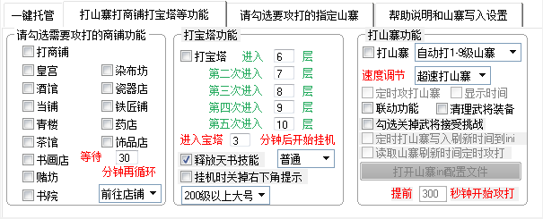 糖果天書(shū)世界輔助自動(dòng)打山寨(調(diào)試打山寨,自動(dòng)賣(mài)垃圾裝備等)、打商鋪(細(xì)分商鋪、可單獨(dú)選擇及一鍵收益)、打?qū)毸?br />
