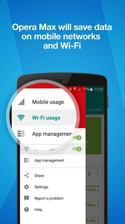Opera Max 可節(jié)省流量,延長(zhǎng)您的流量套餐使用時(shí)間,讓您對(duì)手機(jī)的流量消耗擁有前所未有的掌控。此流量管理與流量節(jié)省應(yīng)用程序可將 3G / 4G / LTE 和 Wi-Fi 的流量使用減少 50%。Opera Max 具有流量節(jié)省功能,可在移動(dòng)網(wǎng)絡(luò)和 Wi-Fi 網(wǎng)絡(luò)中無(wú)損壓縮移您喜愛(ài)的應(yīng)用程序和網(wǎng)站上的視頻、照片和媒體等內(nèi)容。Opera Max 還能通過(guò)阻止在您不知情的情況下在后臺(tái)運(yùn)行的任何應(yīng)用程序來(lái)節(jié)省電量和流量。您還可以將它用作 Wi-Fi 管理器,從而在連接 Wi-Fi 時(shí)更好地控制后臺(tái)應(yīng)用程序的行為。